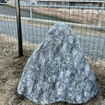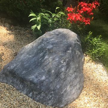 17” H x 27”w x 21” D. Shown in Opal. This rock is shown vented so that it can over propane/septic vents. This rock can be made up to 24" tall.