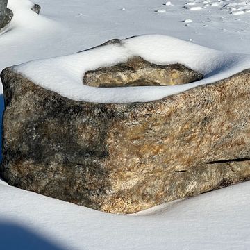 This beautifully designed stone looks like it is straight out of the Flinstones. Starting low to the ground and getting taller the inside dimensions are 7"-14"H and 53"-42" around. Shown in Opal.